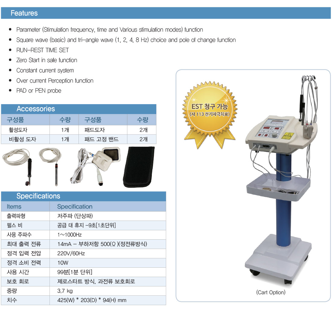 - PARAMETER(자극주파수, 자극시간, 각종 자극 MODE) 저장 가능
